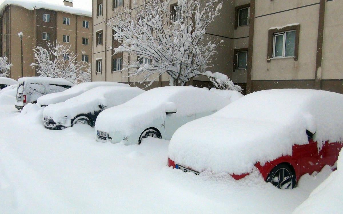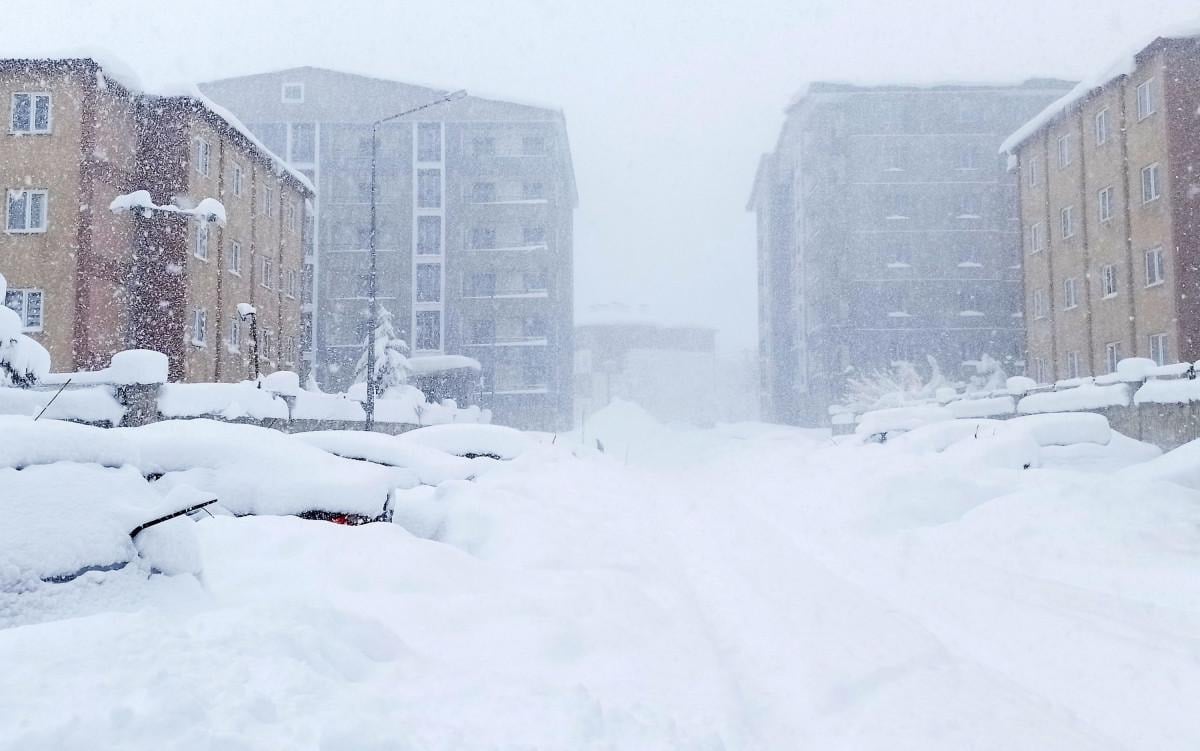 Bitlis'te son 3 gündür etkili olan ve bir metreyi bulan kar kalınlığından dolayı arabalar ve tek katlı evler adeta gömüldü.