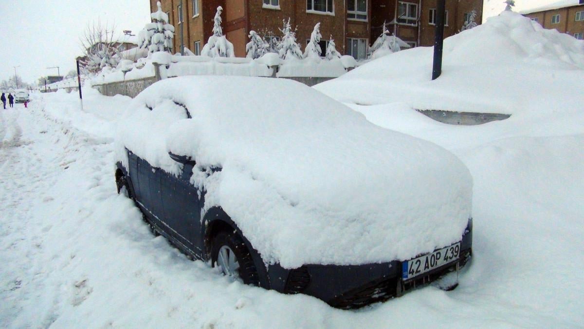 Vatandaşlar uzun uğraşlar sonucu kar altında bulunan araçlarını çıkarmak için çaba sarf ediyor.