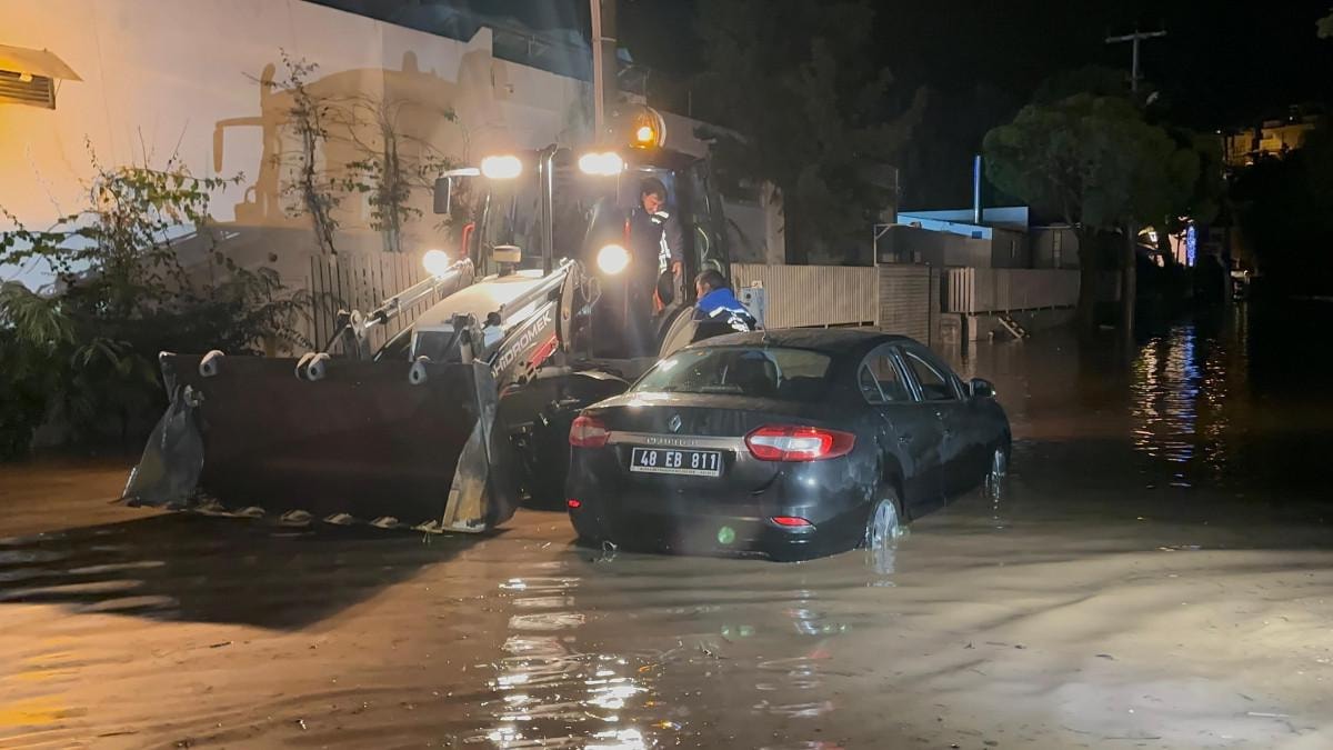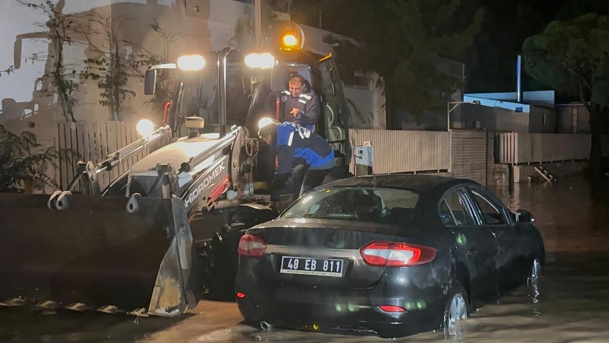 Muğla'nın Bodrum ilçesinde bir anda bastıran sağanak yağmur, ekipleri teyakkuza geçirdi.