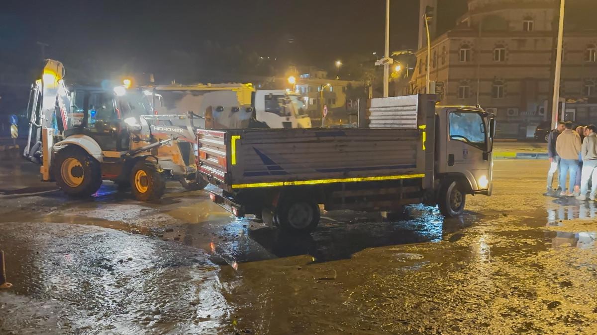 Yol ortasına yığılan parke taşlarıyla toprak, trafik akışını olumsuz etkiledi. Akyarlar Atatürk Caddesi'nde MUSKİ'ye ait otomobil göle dönen yolda mahsur kaldı. Araçtaki 2 personel, iş makinesiyle kurtarıldı.