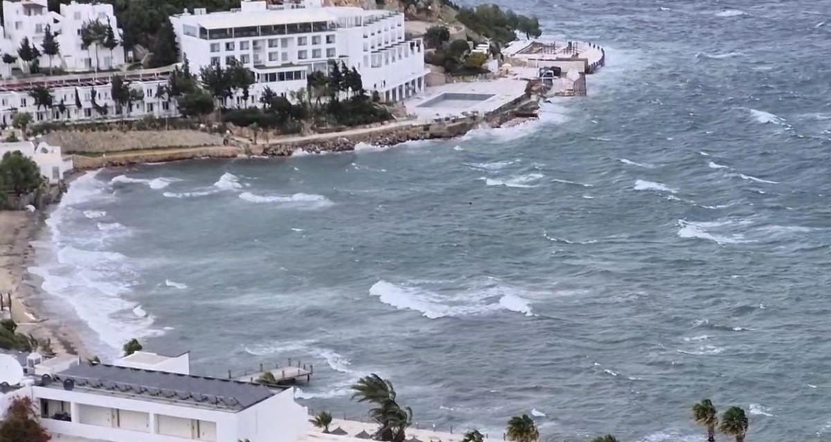 Dev dalgaların kıyıyı dövdüğü kentte, bazı bölgelerde dalga boyu 3 metreyi aştı. Türkkuyusu Mahallesi’nde devrilen bir ağaç yolu trafiğe kapatırken, Gümbet Sahili’nde iskele üzerindeki bir kabin fırtınaya dayanamayarak yıkıldı. Balıkçılar ve tur tekneleri limanda kalırken, Datça Kumluk Sahili’nde yaklaşık 15 metrelik bir motorlu tekne alabora oldu.
