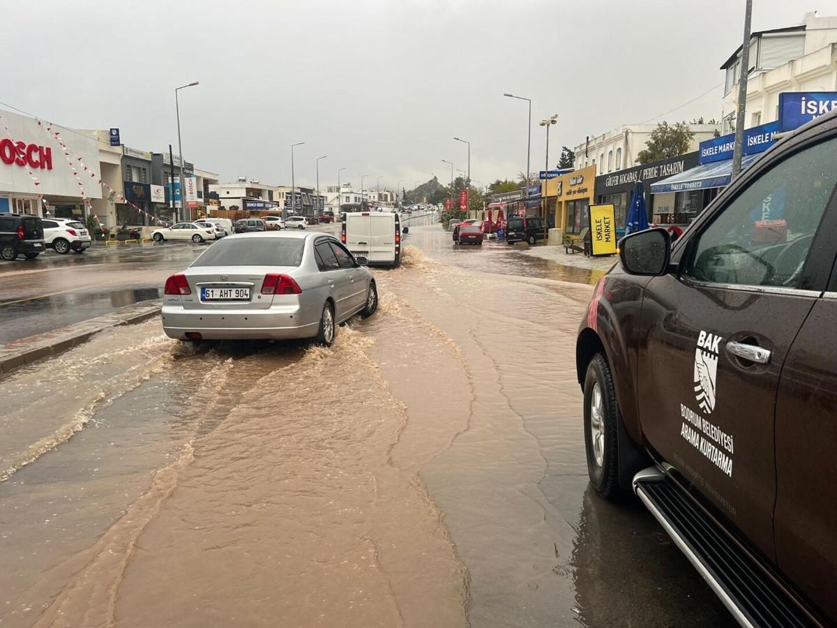 Ekipler, tıkanan mazgallara müdahale etti. Bodrum'da yağışın yarın akşam saatlerine kadar aralıklarla devam edeceği bildirildi.