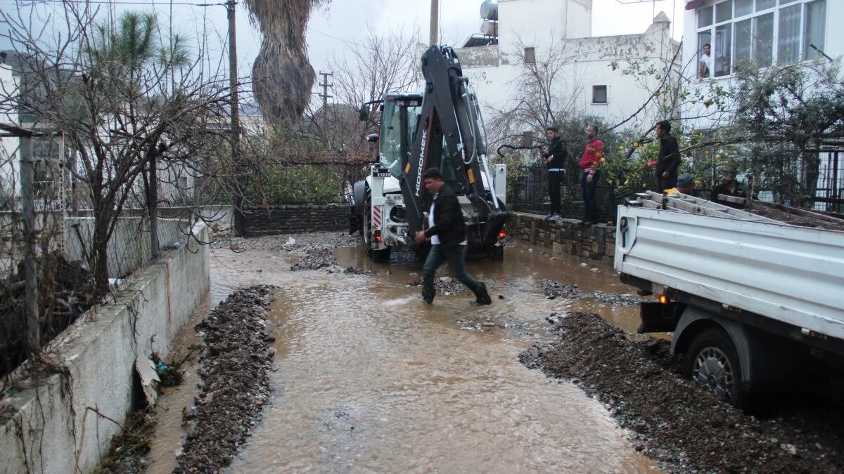 Şiddetli yağmur nedeniyle bazı yolların asfaltları ve kaldırım taşları yerinden söküldü. Bodrum - Turgutreis yolu trafiğe kapatıldı.