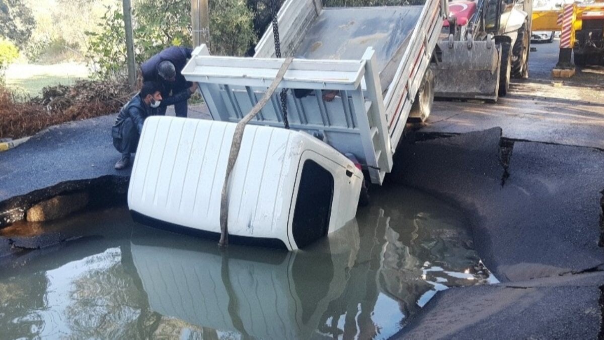Çukurun içine düşen kamyonetin sürücüsü Sıddık Kaya ise kendilerini suyun içerisinde bulduklarını ifade ederek “Bir anda yol çöktü kendimizi suyun içerisinde bulduk. Kapılar açılmıyordu zar zor pencereleri açıp çıktık içerisinden. 3 kişiydik kamyonette son anda canımızı zor kurtardık. İnşaat işi ile uğraşıyoruz. İşe giderken başımıza bu iş geldi. Allah kurtardı bizi çok şükür.” şeklinde konuştu.
