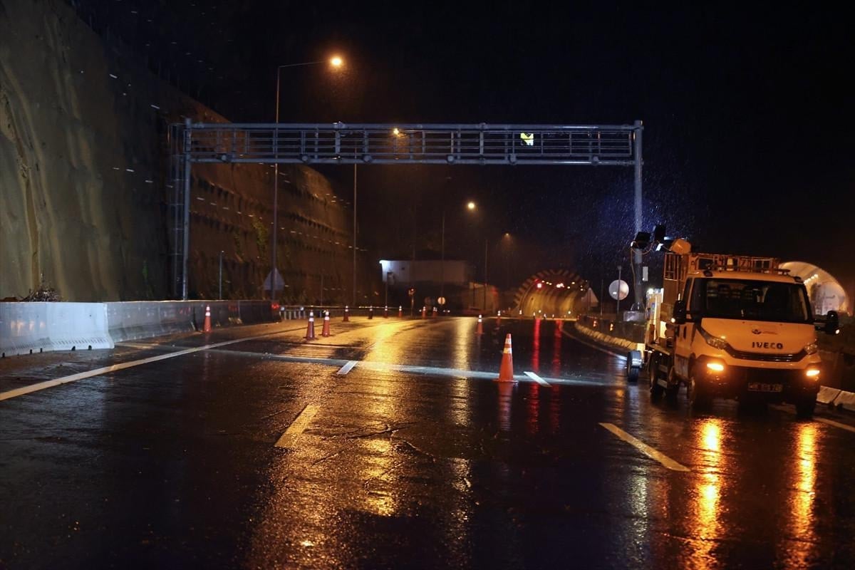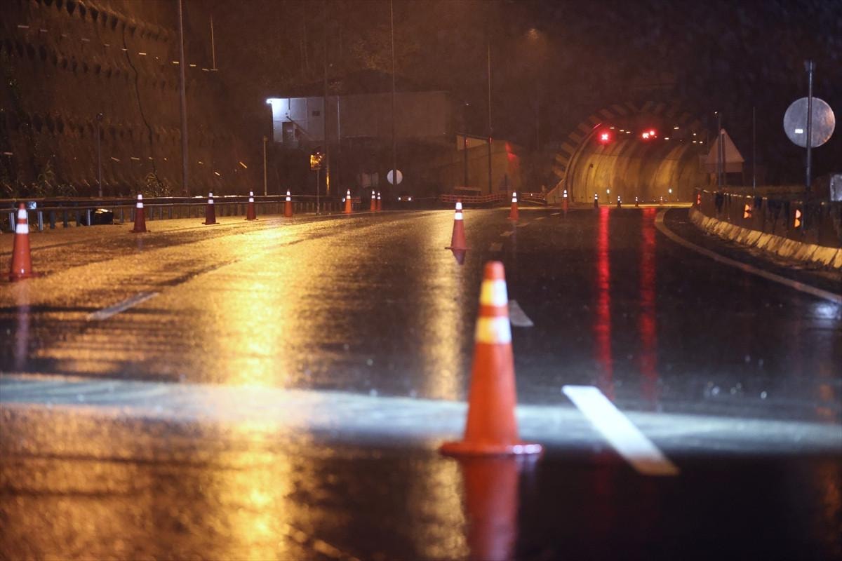 Söz konusu alanda heyelan riski bulunduğunu belirleyen Karayolları ekipleri, Bolu Dağı Tüneli girişinden trafiği kapattı.