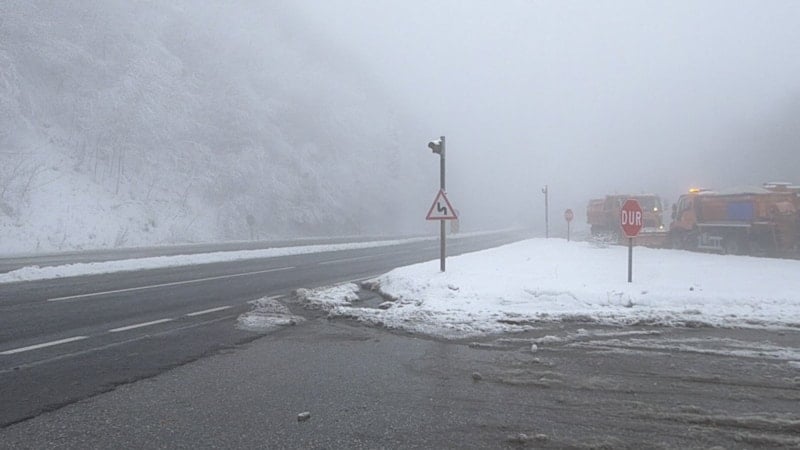 Bölgede etkili olan yoğun sis nedeniyle sürücüler zor anlar yaşıyor. Sis, bazı noktalarda görüş mesafesinin 5 metreye kadar düşmesine neden olurken, kar yağışıyla birlikte sürüş güvenliği daha da zorlaştı.