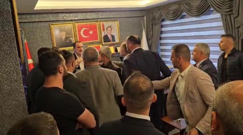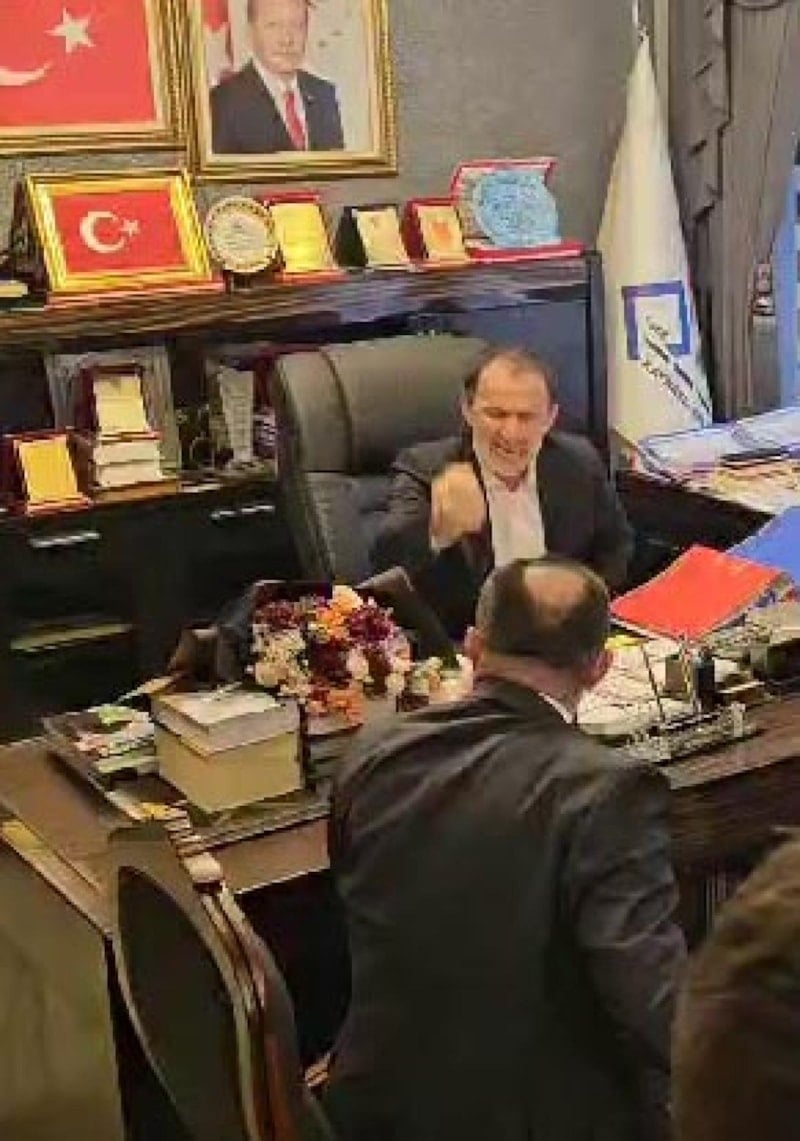 Şahin, daha sonra ayağa kalkıp masada bulunan çiçeği İsmail Akgül’e fırlatarak küfür ve hakaretlerine devam edip üzerine yürüdü.