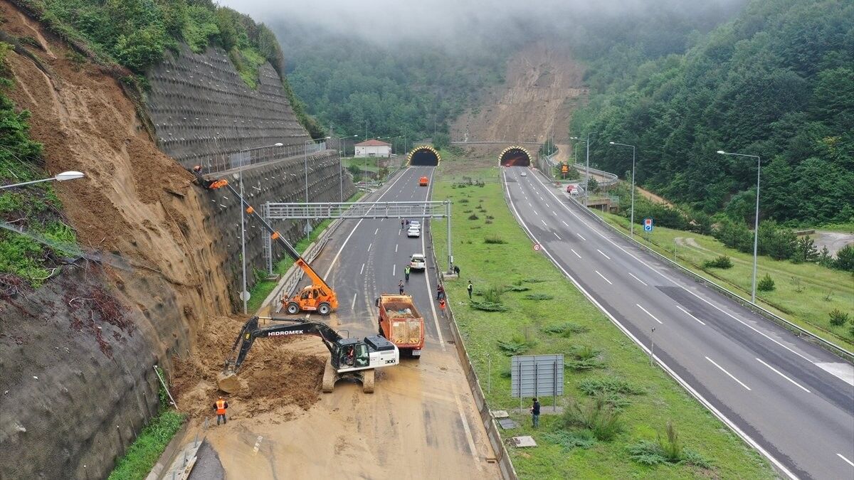 Anadolu Otoyolu Bolu Dağı Tüneli'nin yaklaşık 200 metre dışında, İstanbul istikametine doğru yolun sağında toprak kayması meydana geldi.
