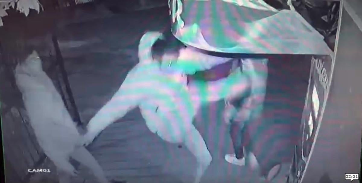 4 gencin boks makinesini çalıştırmak için uğraştığı ve cihazı yumruklayıp tekme attıkları o anlar iş yerinin güvenlik kamerasına yansıdı.
