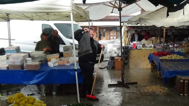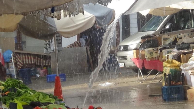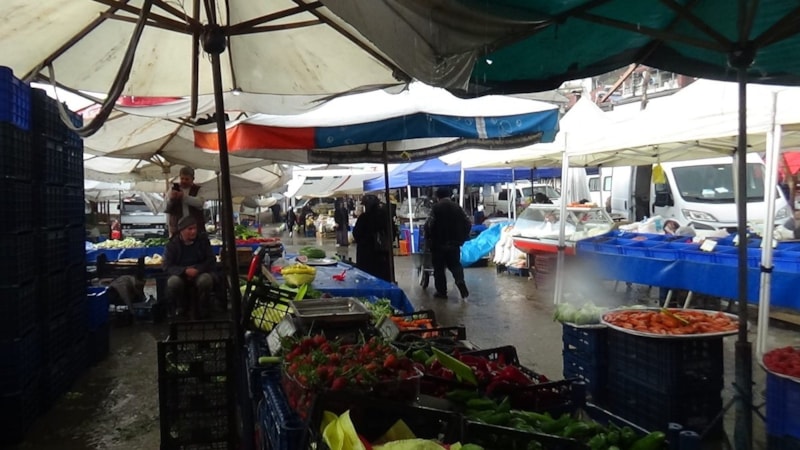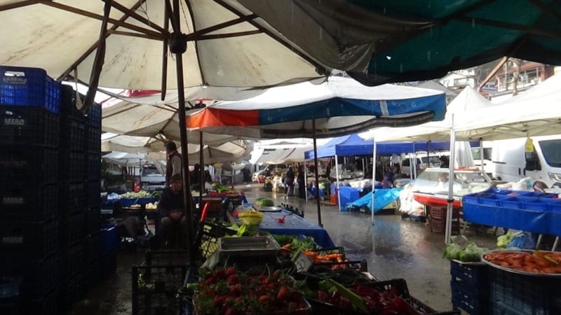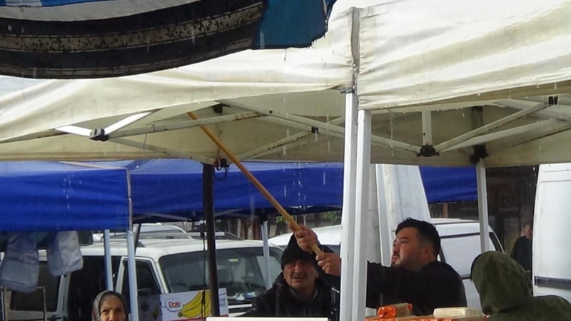Birçok pazarcı ürünlerinin ıslanmaması için brandalar ve naylonlarla önlem almaya çalıştı.