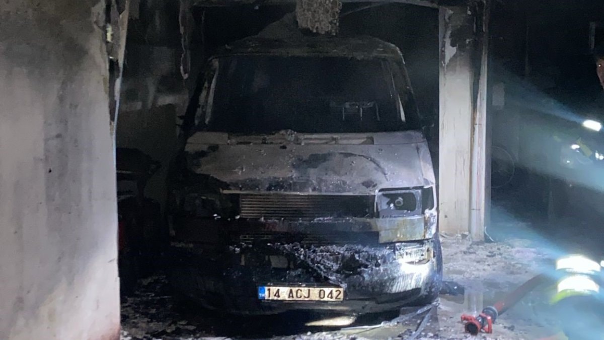 Garajda park halinde bulunan Mustafa K’ya ait 14 ACJ 042 plakalı Volkswagen marka minibüse alevler sıçradı. Bir anda alev topuna dönen minibüsten yükselen yangın, aracın yanında park halinde duran Aysel Y.’ye ait olan 14 AB 547 plakalı Range Rover marka cipe de sıçradı.