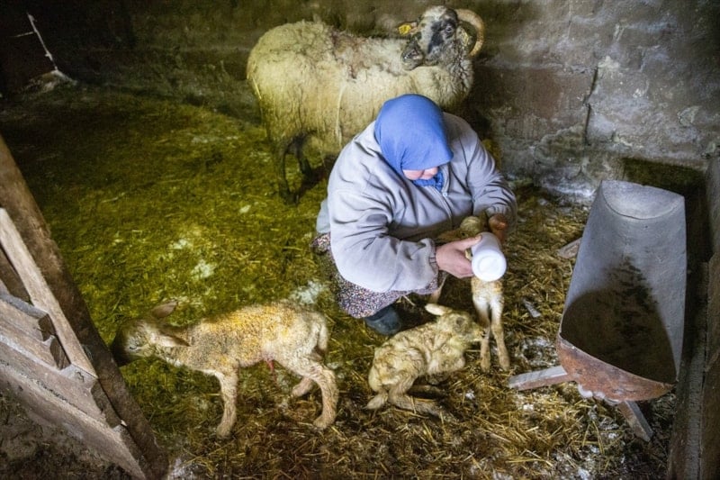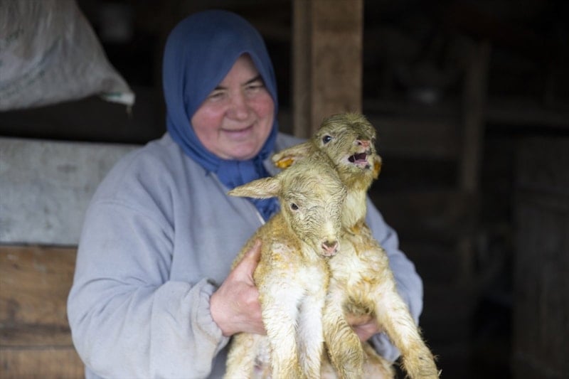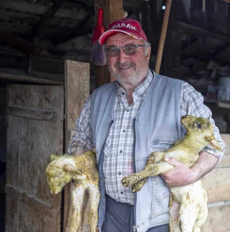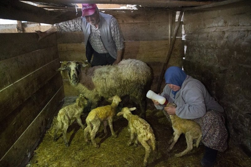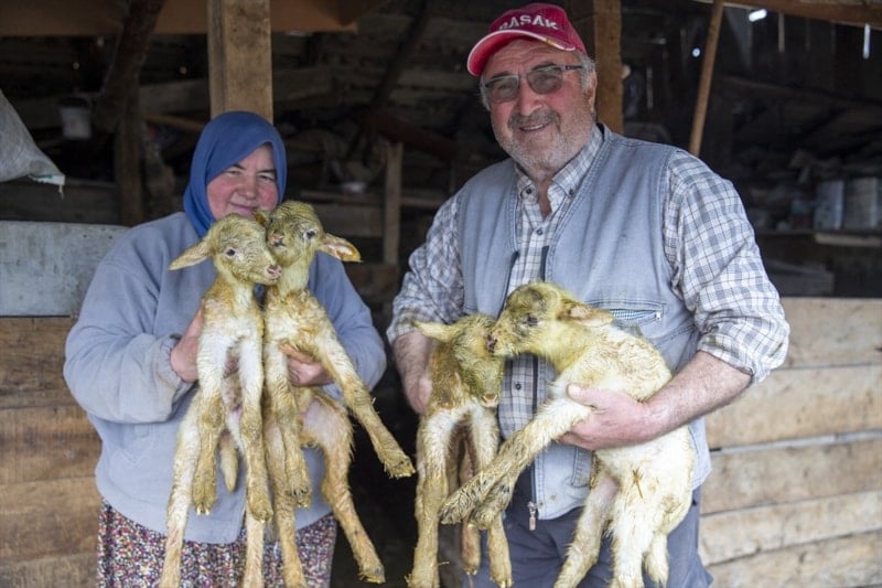 İlk kez dördüz kuzularımız oldu. Geçen yıl 7 koyunumuz üçüz doğum yapmıştı, şimdi de dördüz geldi. Bunu hayvana iyi bakmaya bağlıyorum. Doğal ortamda bakıyoruz, ilaç veya özel yem kullanmıyoruz.