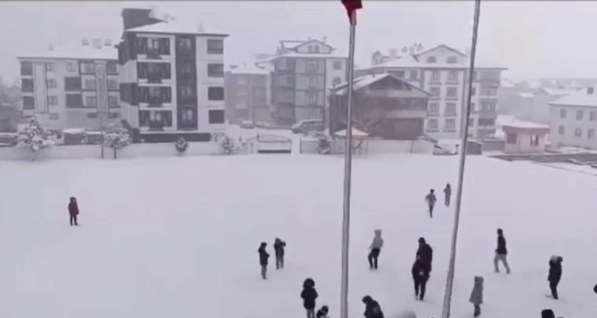 Tüm okuldan 'evet' çığlıkları yükseldi. Dışarıya çıkan öğrenciler kar topu oynayarak, kar yağışının tadını çıkarttı.