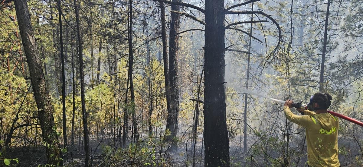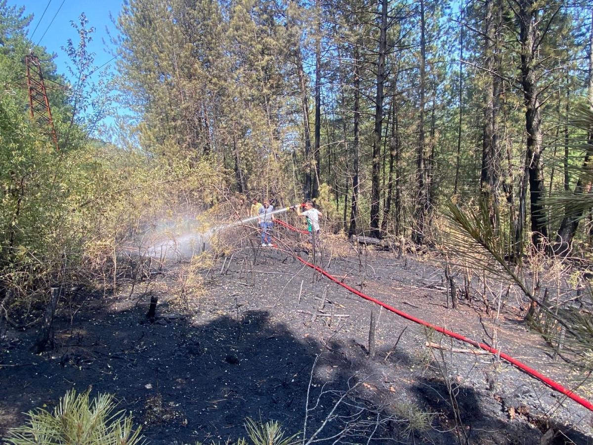 Bir elektrik direğinde meydana gelen arıza nedeniyle çıkan yangın, ormana sıçradı.