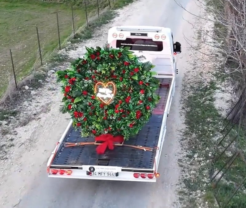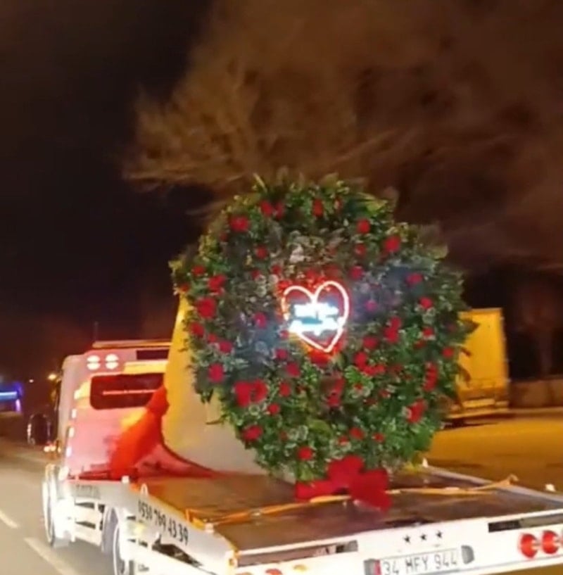 Efe, kendisine ait oto kurtarıcının üzerine devasa boyutlarda bir çiçek buketi yerleştirdi.