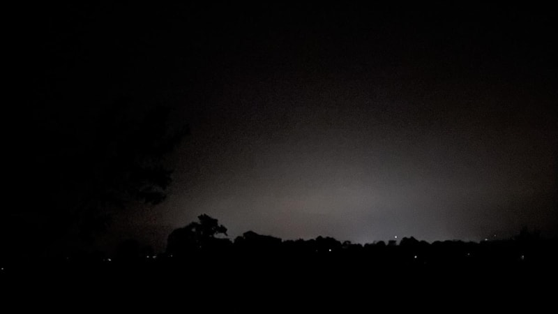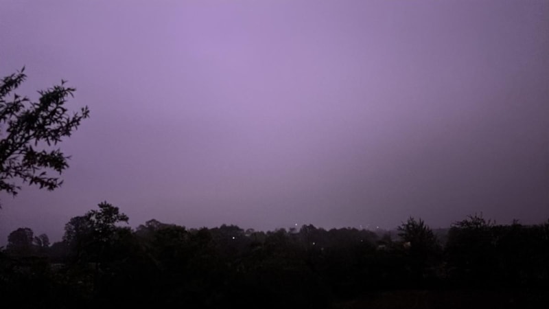 Gökyüzünü aydınlatan şimşekler, bulutların ardından gökyüzünü mor rengine kapladı.