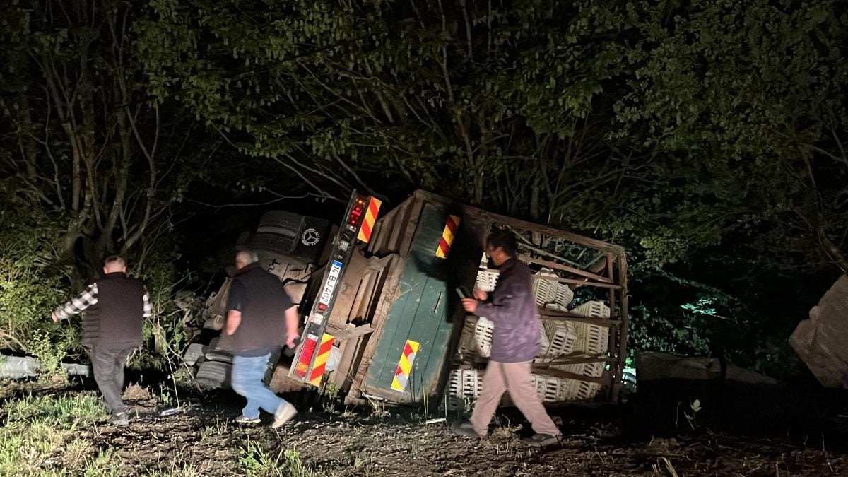 Frenleri boşalan kamyon, sürücünün hakimiyetini kaybetmesi sonucu kontrolden çıktı.