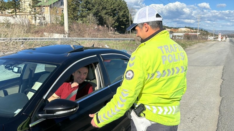 Türkiye'nin en önemli geçiş güzergahlarından Anadolu Otoyolu ve D-100 kara yolunun Bolu kesiminde trafik ekipleri, kontrol noktasında durdurdukları sürücülere "Hayatla Yarış Olmaz" mottosuyla kuralları hatırlatıyor.