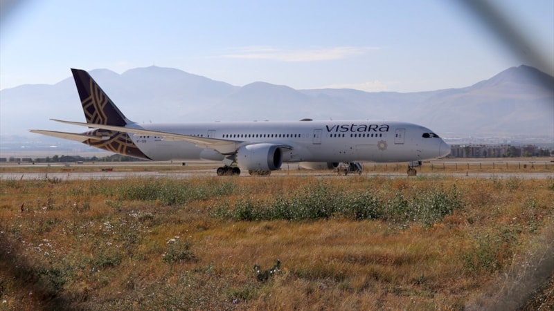 Almanya'ya gitmekte olan Air Vistara Havayolları'na ait yolcu uçağı, dün yapılan asılsız bomba ihbarı nedeniyle Erzurum Havalimanı'na mecburi iniş yapmıştı. 234 yolcu ve 13 mürettebatın bekleyişi ise devam ediyor.