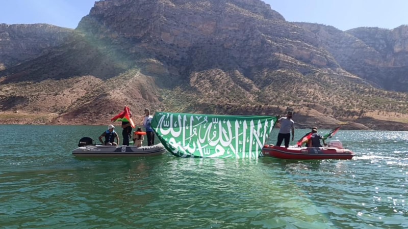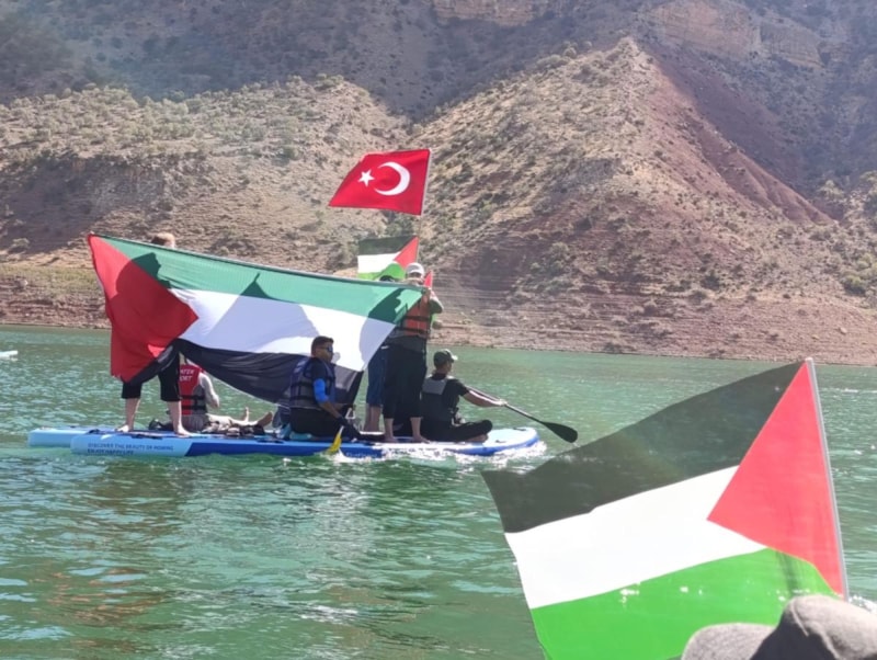 Ilısu Prof. Dr. Veysel Eroğlu Baraj Gölü kıyısında toplanan vatandaşlar, ellerinde Türk ve Filistin bayraklarıyla Gazze’ye yönelik saldırılara tepki gösterdi.