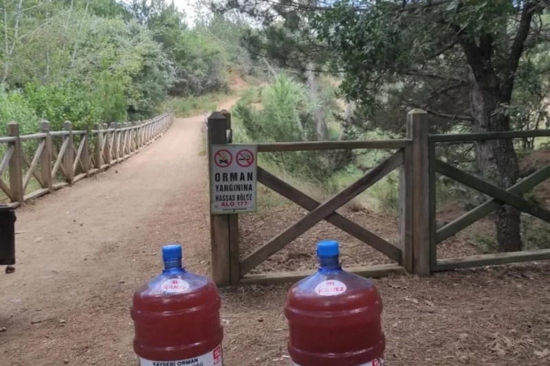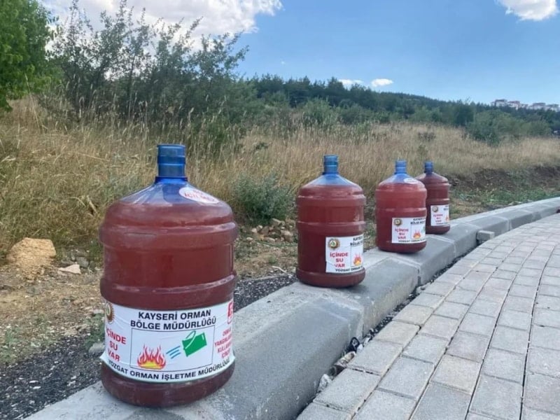 Yozgat'ta orman yangınlarına karşı önlem amacıyla orman yollarının kenarına su dolu damacanalar yerleştirildi.