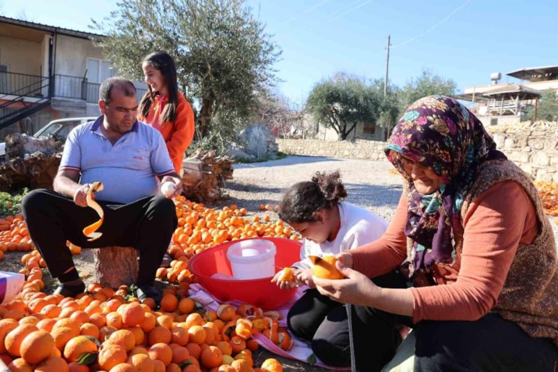Turunçlu köyünden Ahmet Yiğenoğlu, "10 kilodan 1 kilo kabuk çıkıyor. Ağaçlarda kalınca ağaçlara zarar veriyor biz de topluyoruz. Turunçların kabuğu ayrı içi ayrı değerlendiriliyor. Turunç ekşisi yapıyoruz. Bir yanda kazan kaynıyor bir yanda turunç, portakal narenciye kabukları soyuluyor. Kilosu 20-25 TL arasında satılıyor. Köye gelen toptancılara satılıyor, Ege bölgesine gidiyor. Kozmetik, ilaç sanayisinde kullanıyor. Ailecek oturup bu işi yapıyoruz" dedi.