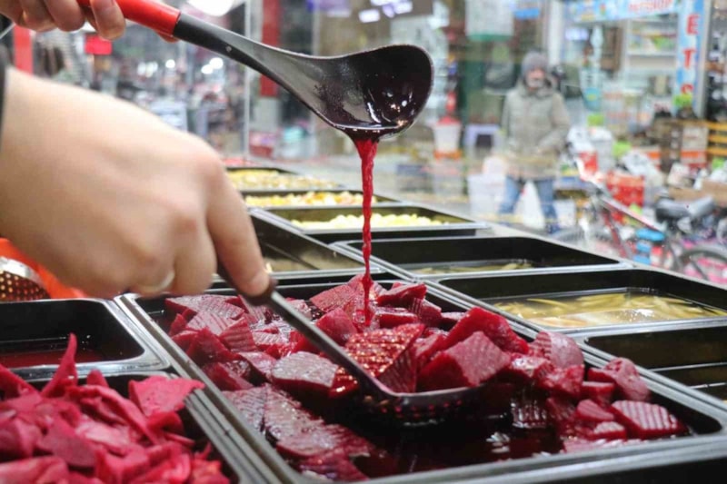 Turşu satıcısı Burak Dener, turşu kurulumunun genellikle sirkeyle yapıldığını, bunun ürünün ömrünü uzattığını ve koruyuculuğu artırdığını belirtti.