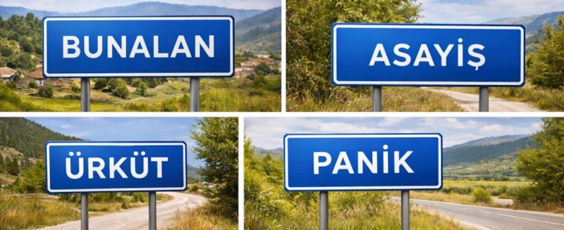 Yapılan çalışmada, harita üzerinde karşılaşılan bazı köy adları özellikle sosyal medyada ilgi uyandırdı. Günlük hayatta duyulduğunda şaşkınlık yaratan bu isimler arasında “Bunalan”, “Dertli”, “Çilehane”, “Çöpler”, “Asayiş”, “Ürküt”, “Panik”, “Gaipler” ve “Bazlamaç” gibi dikkat çekici yerleşimler yer aldı.