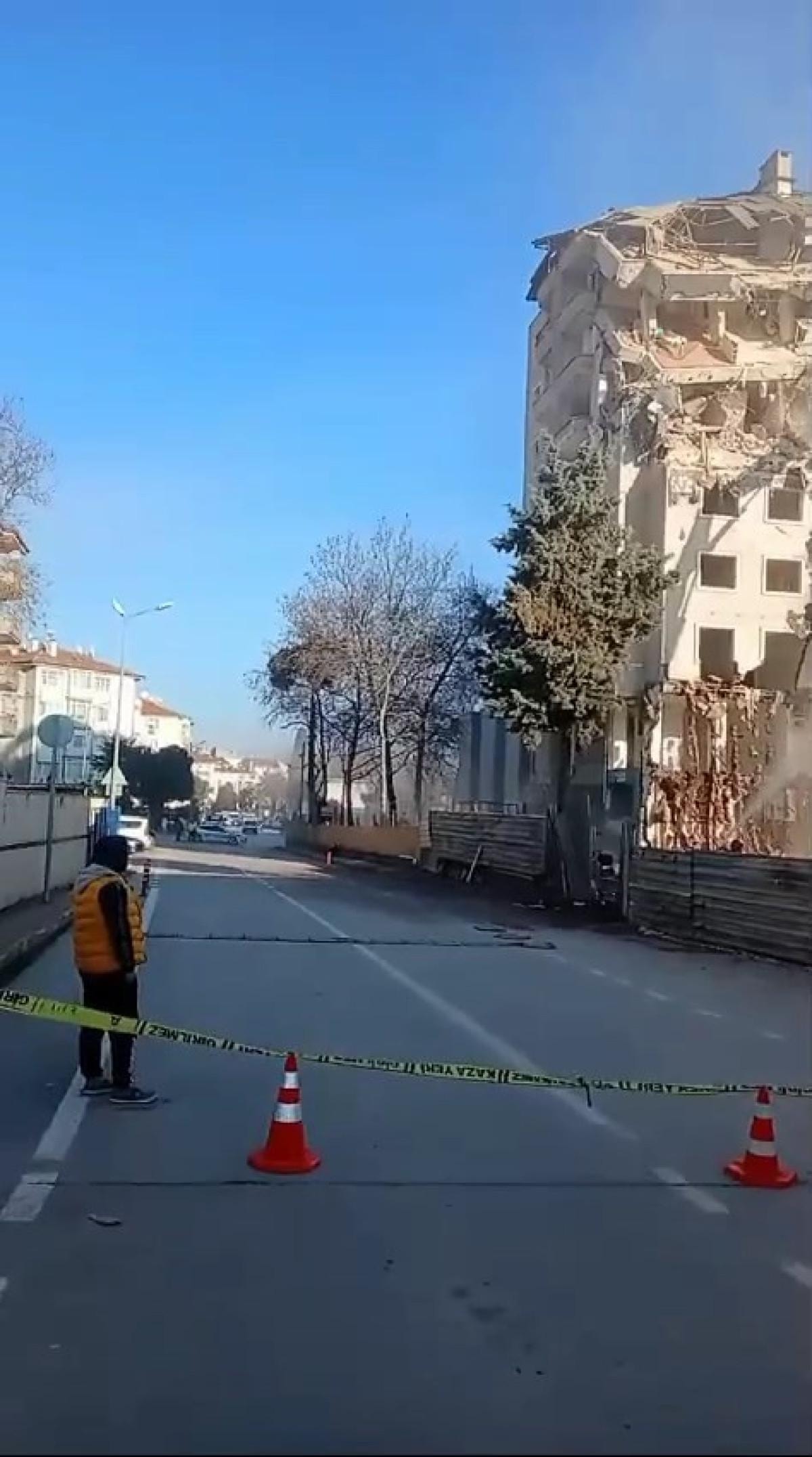 İş makinesinin tek kepçe darbesiyle binayı yerle bir etmesi ise dikkat çekti. O anlar cep telefonu kamerasına yansıdı.