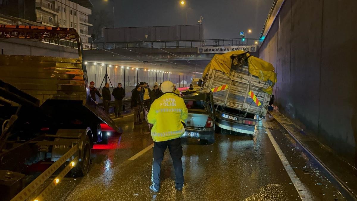 17 Şubat günü saat 21.00 sıralarında merkez Yıldırım ilçesi Ankara Yolu Caddesi Mimar Sinan Alt Geçidi'nde, yağış sebebiyle kayganlaşan yolda bir kamyon ile üç otomobil zincirleme kaza yaptı.