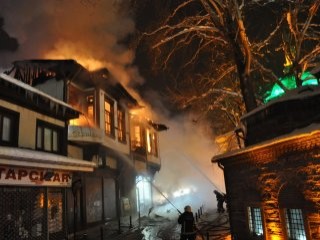 İnegöl’ün tarihi yerlerinden İshakpaşa Cami ve Külliyesi ile 2013 yılındaki büyük yangında alevlere teslim olan tarihi Cafer Paşa Han’ın karşısında bulunan, İshakpaşa sokak üzerindeki 185 yıllık tarihe sahip ahşap binanın ikinci katında faaliyet gösteren kafe işyerinde gece 04.00 sıralarında yangın çıktı. Binanın ahşap olması nedeniyle alevler biranda büyüyerek alt katlarda bulunan bisiklet tamircisi, seyahat acentesi ve çantacı işyerine de sıçradı.