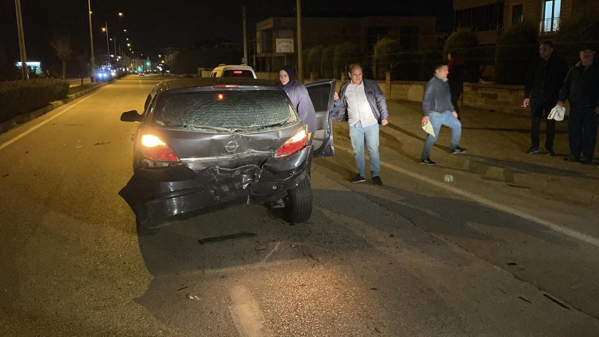 Bursa'da İnegöl ilçesi Ahmet Türkel Çevre Yolu üzerinde ehliyetsiz seyir halinde olan Ahmet M. (17) yönetimindeki 16 MB 9304 plakalı otomobil, sürücüsünün kontrolünden çıkarak önünde seyreden Serhat A. (31) yönetimindeki 16 FU 652 plakalı otomobile arkadan çarptı.