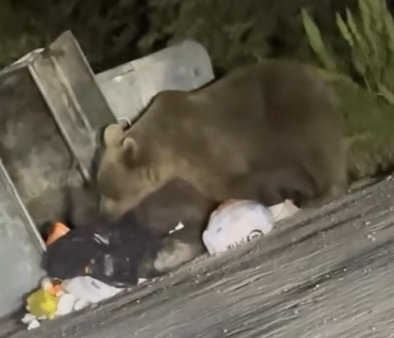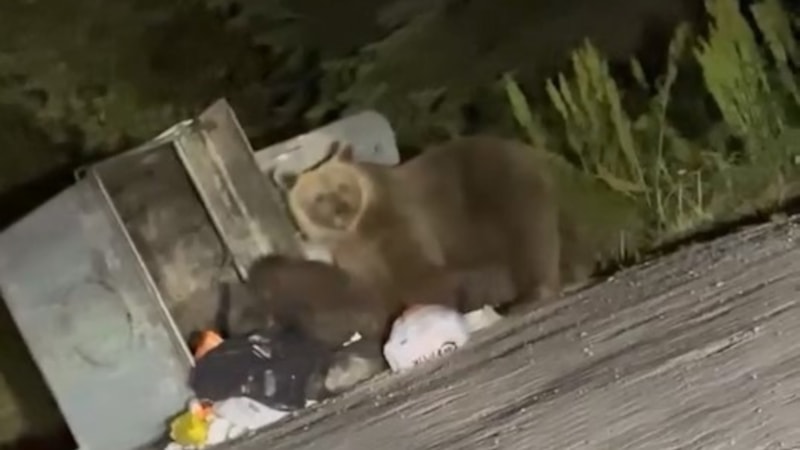 Türkiye’nin önemli turizm merkezlerinden biri olan Uludağ’da aç kalan ayı ailesi, çöp konteynerlerini karıştırarak yiyecek aradı.