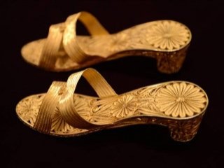 22 ayar altından üretilen 400 gram ağırlığındaki tabanı telkari işlemeli altın terlik, 40 bin liradan satışa sunuluyor.