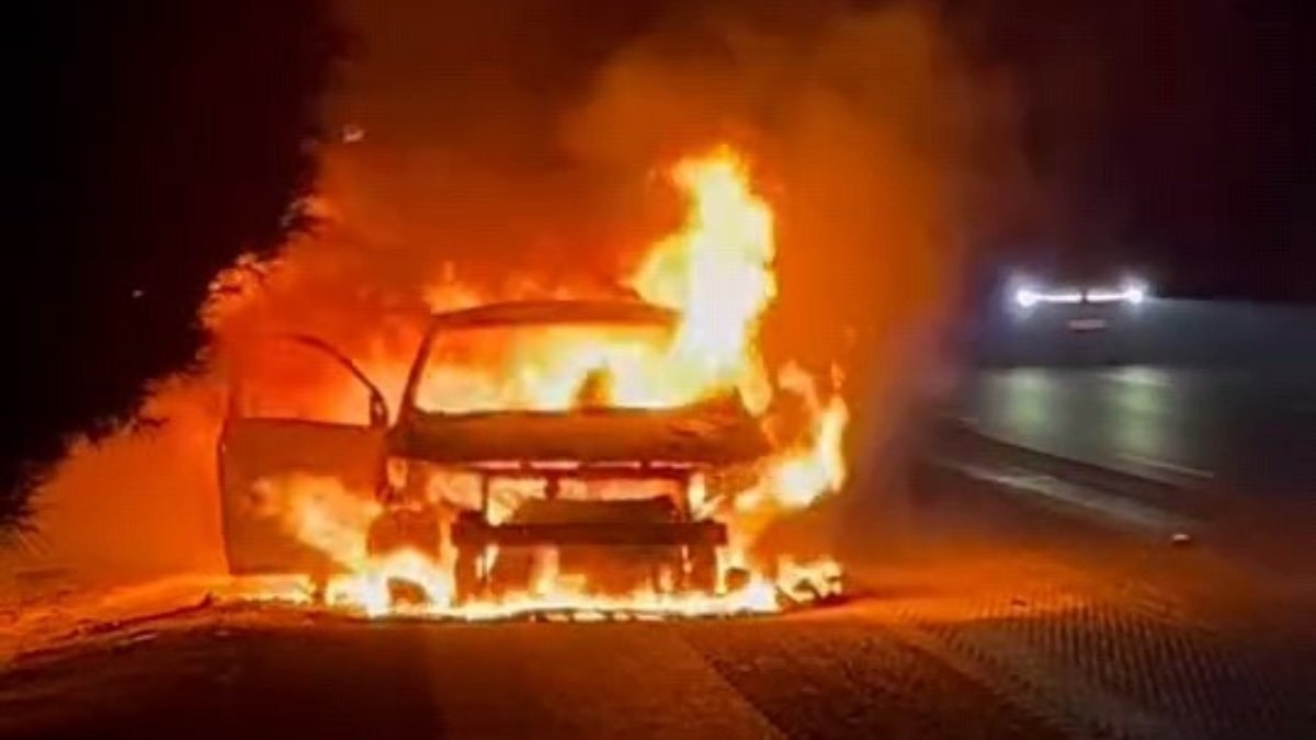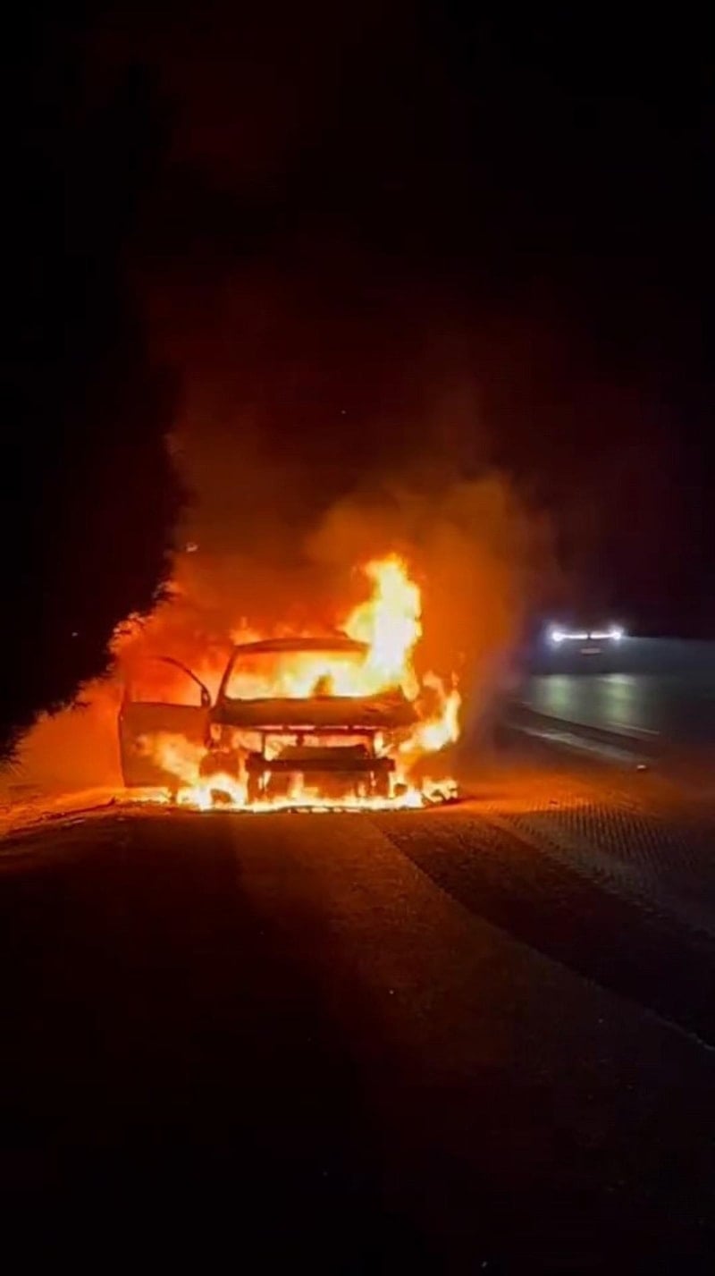 Dumanları gören sürücü, aracı yol kenarına park edip itfaiyeye haber verdi. O sırada araç alev alev yanmaya başladı.