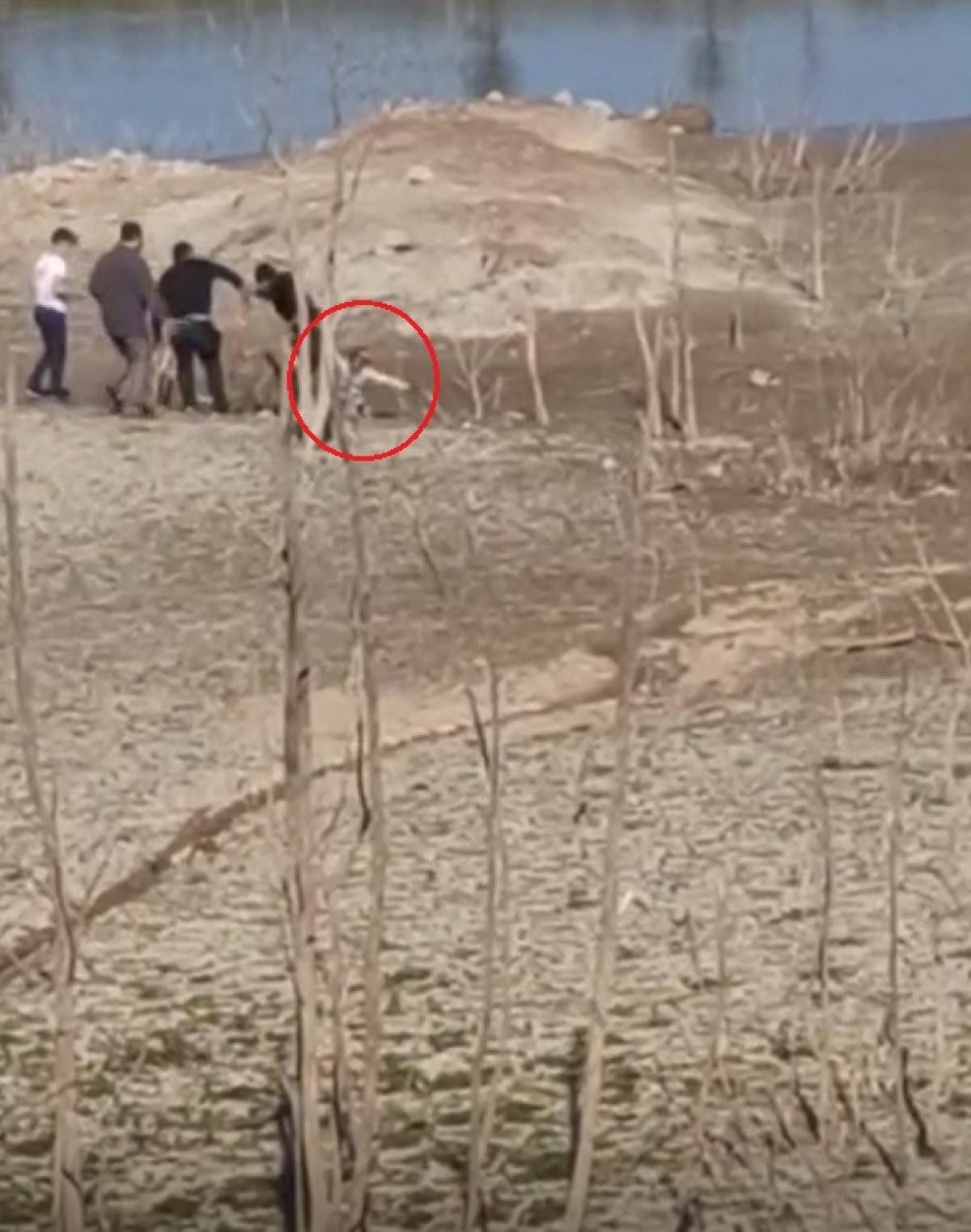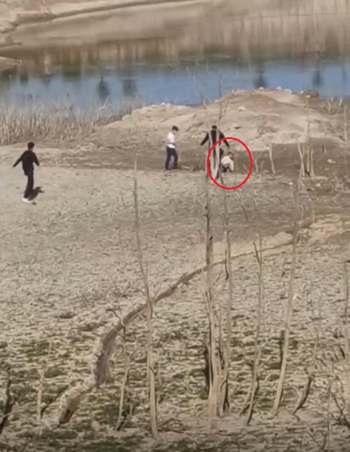 Çocuk saplandığı bataklıktan kurtarılırken, o anlar çevredekiler tarafından cep telefonu kamerasıyla kayda alındı.