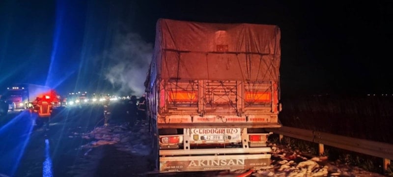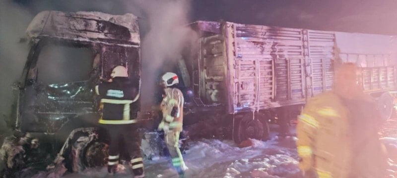 Yangını fark eden sürücü tır emniyet şeridinde durdurdu. İbrahim Ethem D., 112 Acil Çağrı Merkezine haber verirken, alevler kısa sürede tüm tırı sardı. İhbar üzerine olay yerine polis, itfaiye ve sağlık ekipleri sevk edildi.