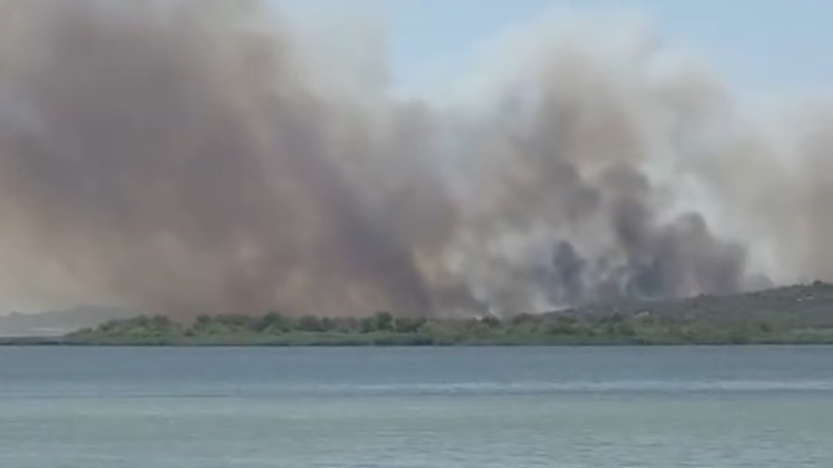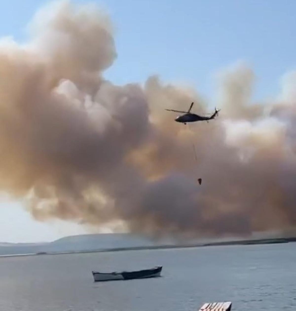 Yangının Uluabat Gölü'nün hemen yakınlarında olması hava araçlarının işini kolaylaştırdı.