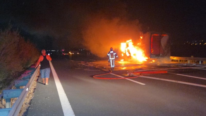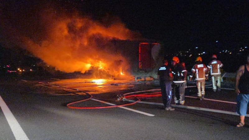 Bursa'da gece yarısından hemen sonra Gebze Orhangazi İzmir otoyolunda Bursa istikametine seyir halinde olan, Ramazan Altıntop yönetimindeki kargo kamyonu bilinmeyen bir nedenle alev aldı.