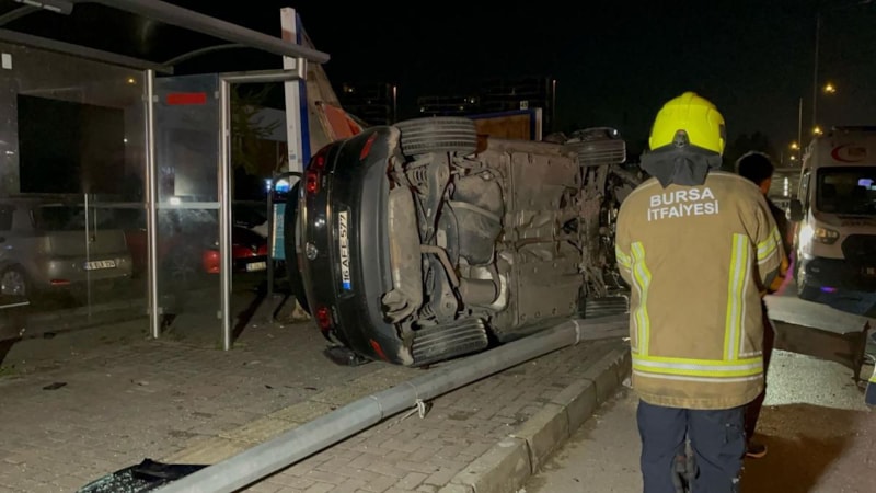 Bursa'da sürücüsünün kontrolünden çıkan otomobil kaldırımda bulunan aydınlatma direğine ve reklam panolarına çarparak takla attı. Yaşanan kazada otomobil sürücüsü olay yerinde hayatını kaybederken, bir kişi de yaralandı.