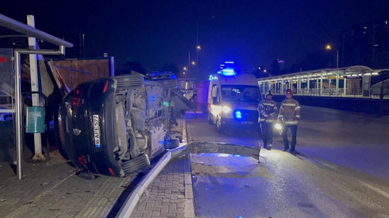 Bursa'da saat 05.30 sıralarında merkez Nilüfer ilçesi İzmir Yolu Caddesi üzerinde, Görkem Güneyli idaresindeki 16 AFE 577 plakalı otomobil, sürücüsünün kontrolünden çıkarak önce yol kenarında bulunan aydınlatma direğine, daha sonra da reklam panolarına çarparak takla attı.