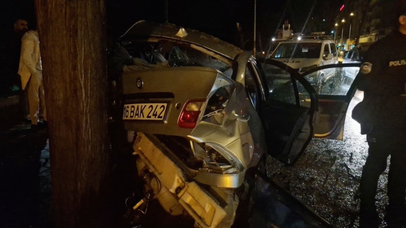 Bursa'da Osmangazi ilçesinde gece saat 05.00 sıralarında Gaziakdemir Mahallesi Çekirge Caddesi'nde Sezer Kurtoğlu idaresindeki 16 BAK 242 plakalı otomobil, sürücüsünün direksiyon hakimiyetini kaybetmesi sonucu önce yol kenarındaki ağaca ardından da trafik levhasına çarptı.