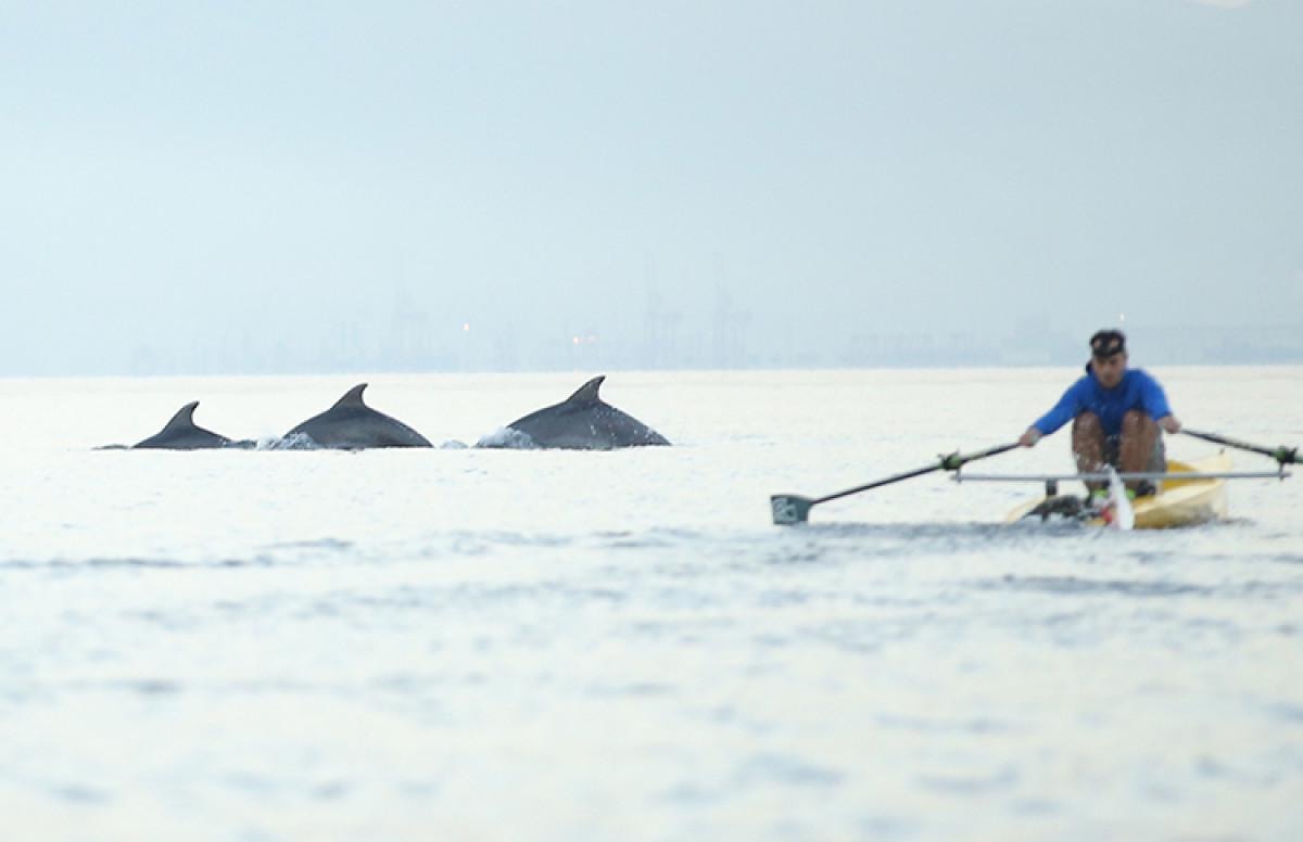 Yunusların "ziyaretine" değinen İpek, "Şanslıysanız sabah misafirleriniz oluyor. Bu sabah 3 yunus, kürek çekerken bize eşlik etti. Çok keyifliydi. Hem gün doğumunu seyretmek hem de yunuslarla beraber suda olmak gerçekten dünyada yaşanamayacak duygulardan biri diye düşünüyorum." ifadesini kullandı.