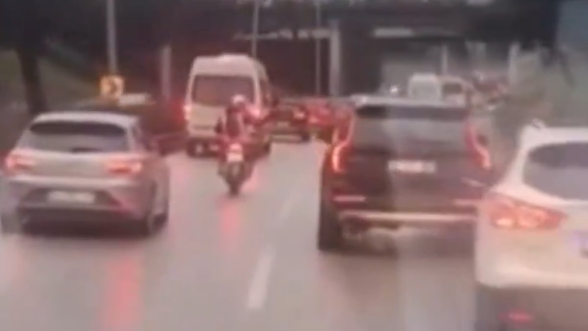 Duyarlı motosiklet sürücüsünün bir ambulansa fermuar sistemiyle yol açtıran görüntülere, Sağlık Bakanı Fahrettin Koca'dan tebrik geldi.