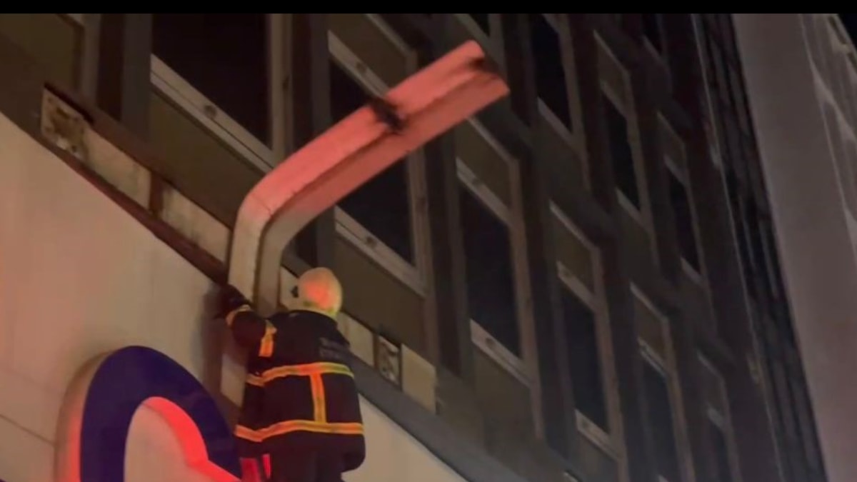 Polisler emniyet şeridi çevirdi, itfaiye ekipleri ise merdivenle çıkarak sac parçasını söktüler.