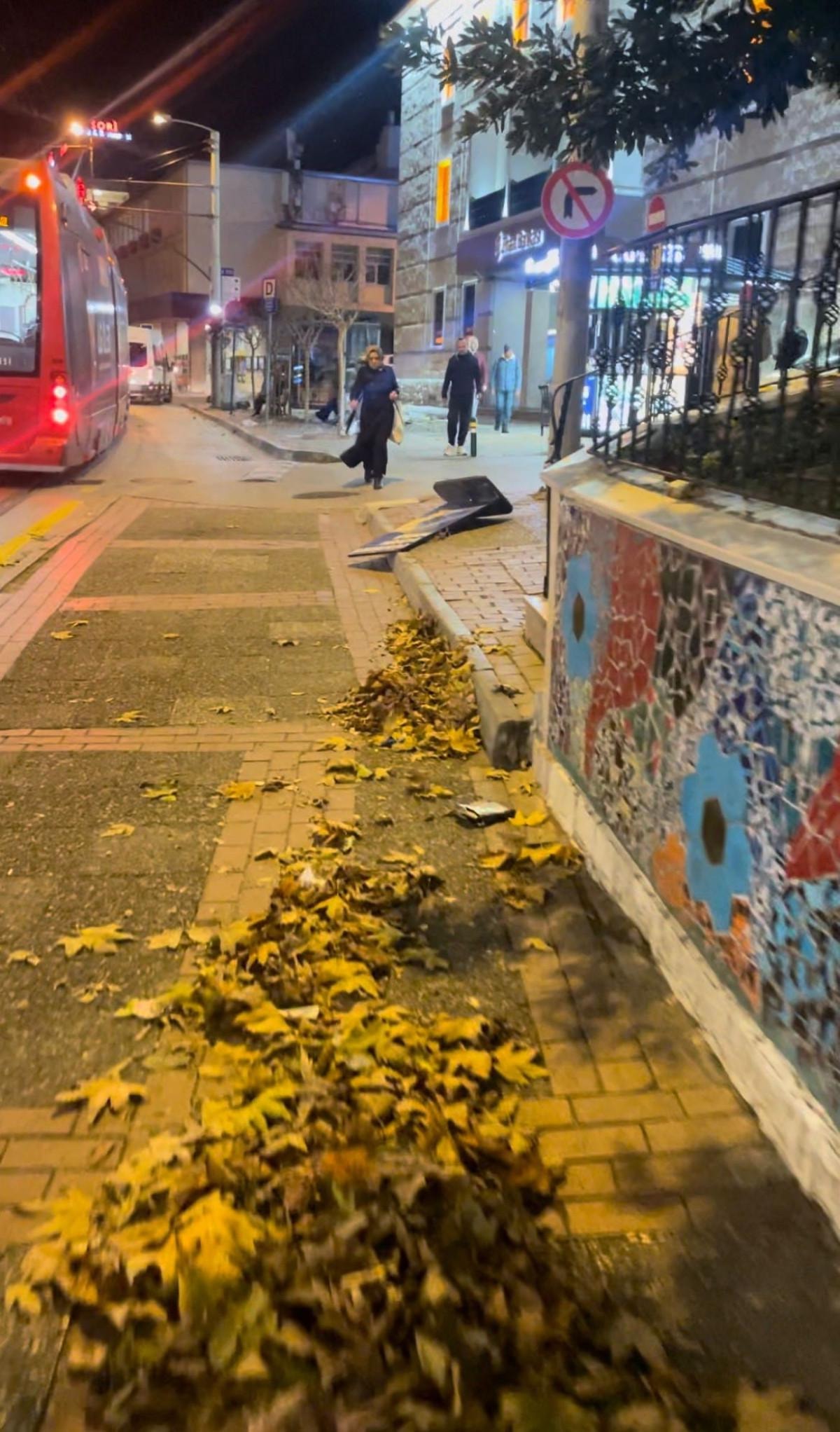 Şehir merkezinde ağaçların yaprakları ve dalları ile çöp kutularından uçan cisimler tehlike oluşturdu.