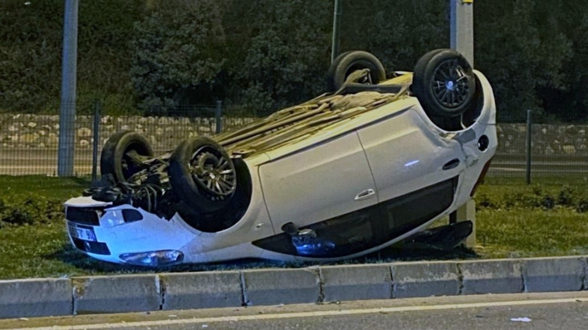 Bursa'nın Mudanya ilçesi Güzelyalı Kavşağı'nda İ.F.T. idaresindeki 16 JLS 90 plakalı Fiat Punto marka otomobil, sürücünün direksiyon hakimiyetini kaybetmesiyle orta refüje çarpıp takla attıktan sonra aydınlatma direğine çarparak durabildi.