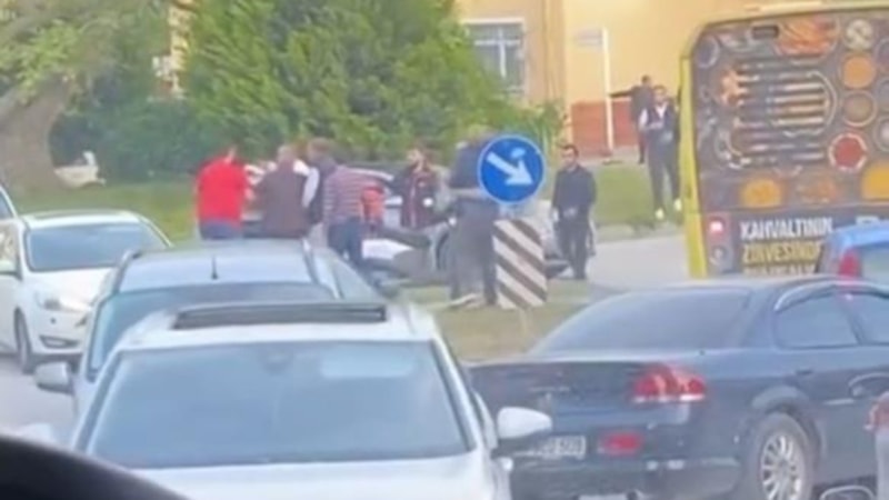 Sözlü tartışma kısa sürede alevlenerek kavgaya döndü. Araçtan inen sürücüler, sokağı adeta boks ringine çevirdi.