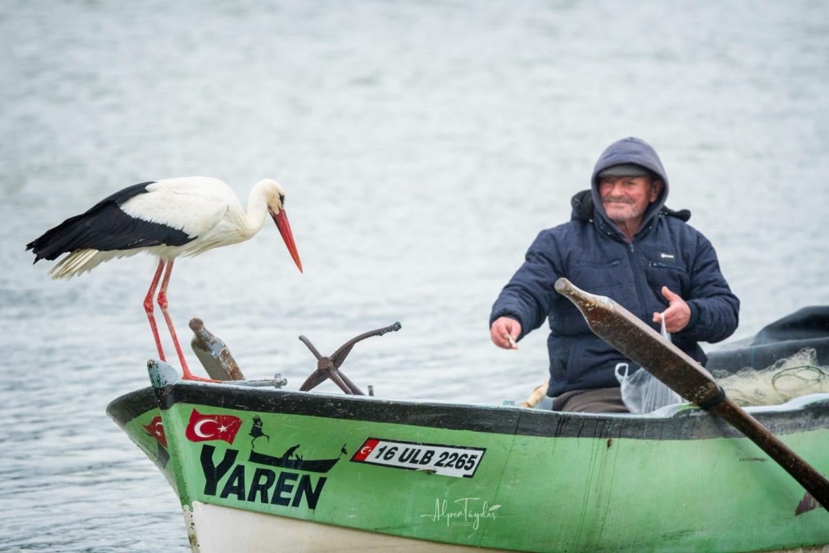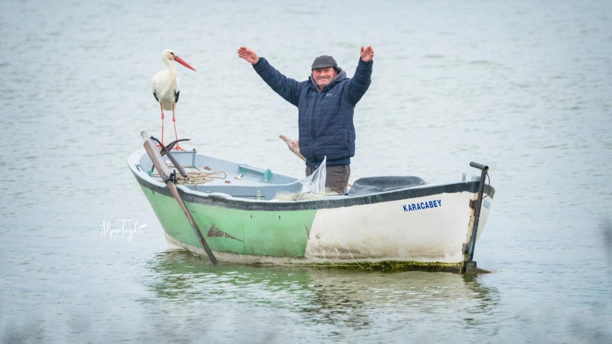Balıkçı Adem Yılmaz, bu sabah Yaren leylek ile kayığında buluştu. O anlar ise doğa fotoğrafçısı Alper Tüydeş tarafından fotoğraflandı.