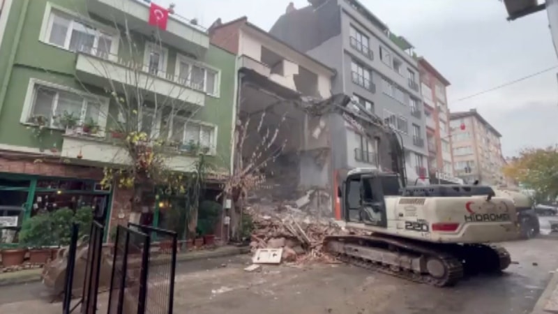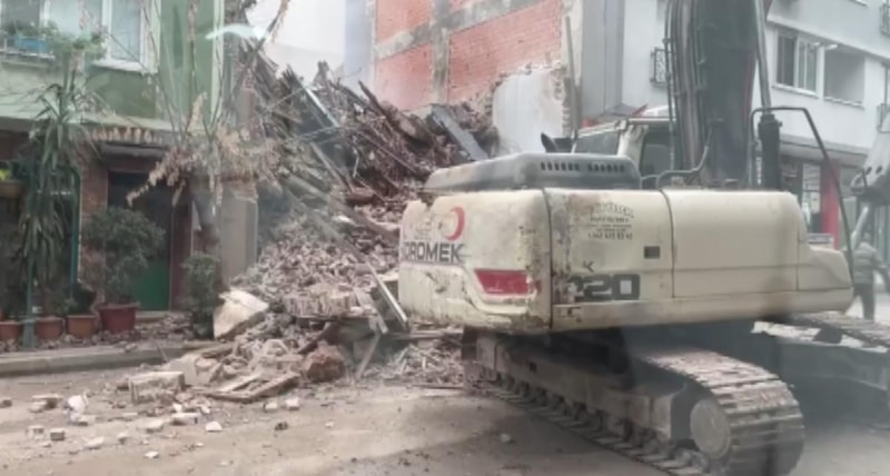 Bursa'nın Osmangazi ilçesine bağlı Sakarya Mahallesi 10’uncu Yavuz Sokak’ta, hakkında yıkım kararı bulunan 4 katlı eski binada iş makinesiyle kontrollü yıkım çalışması başlatıldı. Operatör, binayı zeminden yıkmaya başladı.
